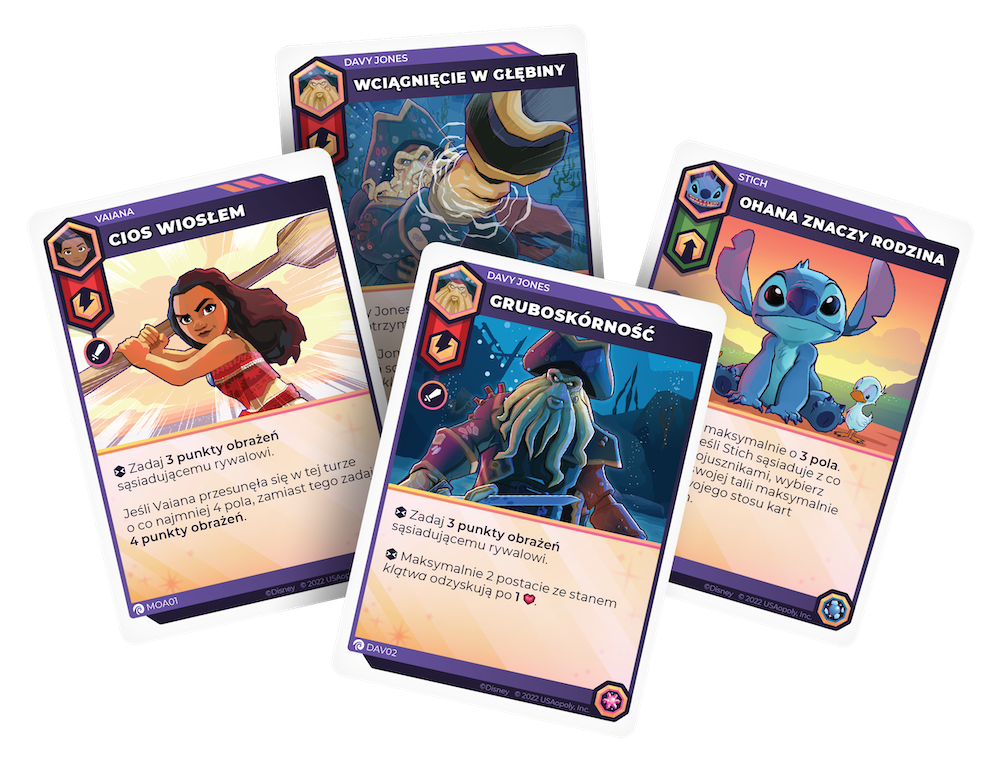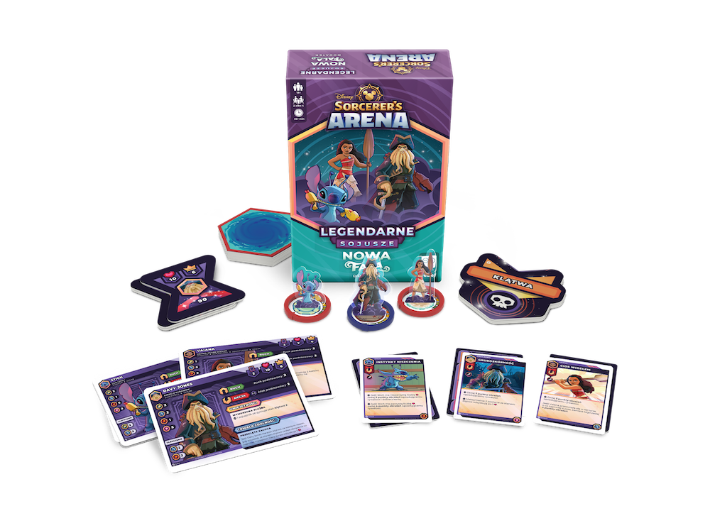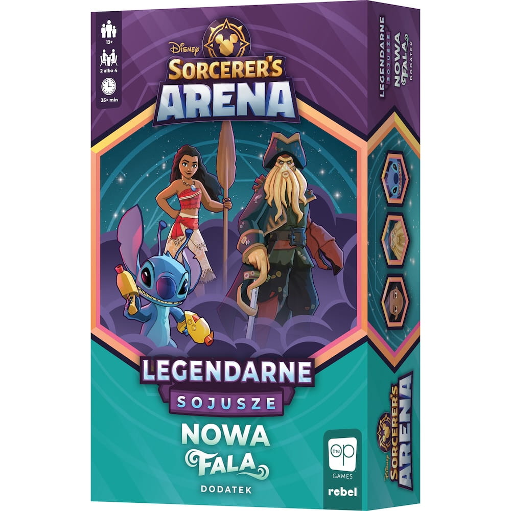Disney Sorcerer's Arena: Legendarne sojusze - Nowa fala to rozszerzenie, dzięki któremu rozwiniesz swoją strategię i odkryjesz zupełnie nowy wymiar rozgrywki! W zestawie znajdziesz Vaianę, Davy’ego Jonesa i Sticha oraz związane z nimi specjalne kafelki oceanu.