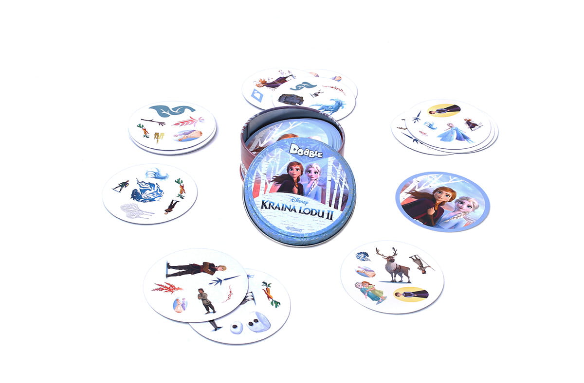 Zabierz Elsę, Annę, Kristoffa, Olafa i Svena gdzie tylko zechcesz i baw się, szukając par w popularnej grze imprezowej! Podczas zabawy gracze będą doskonalili swoją spostrzegawczość i refleks w towarzystwie postaci znanych z Krainy Lodu.