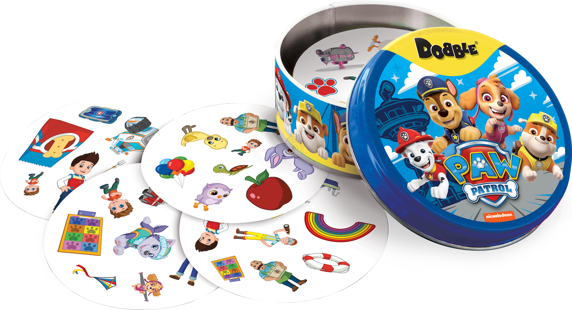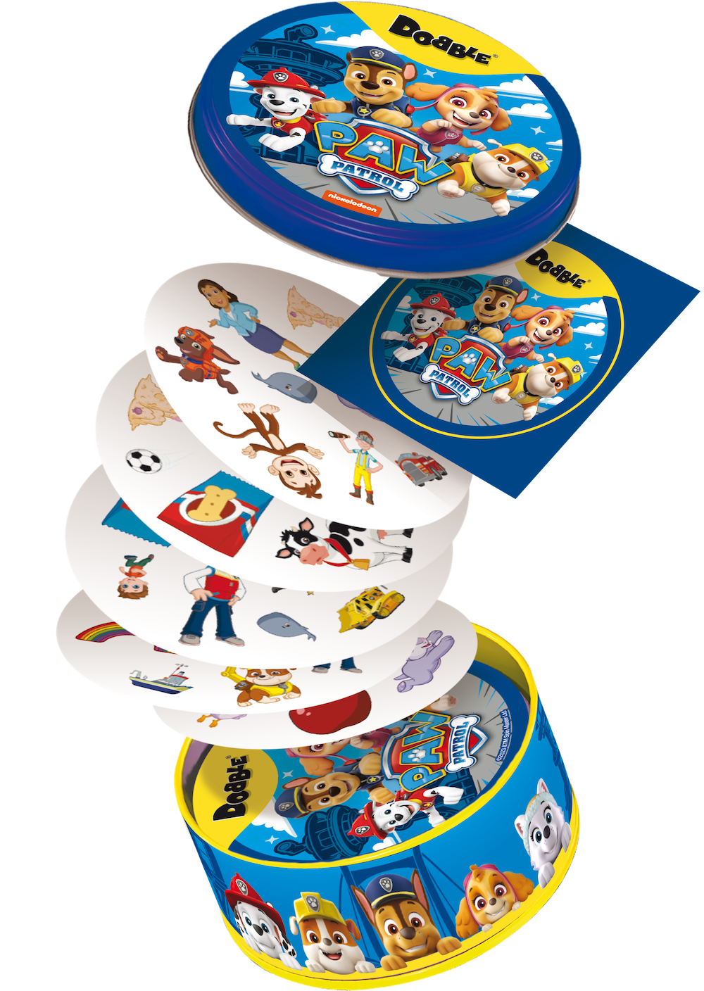 Marshall, Rubble, Chase, Rocky, Zuma, Skye! Bohaterskie psiaki, które na co dzień dzielnie pomagają potrzebującym, zawitały na karty Dobble, by wspierać najmłodszych w ćwiczeniu refleksu i spostrzegawczości! Czy uda Ci się wypatrzyć parę identycznych bohaterów lub charakterystycznych przedmiotów zanim zrobią to przeciwnicy?