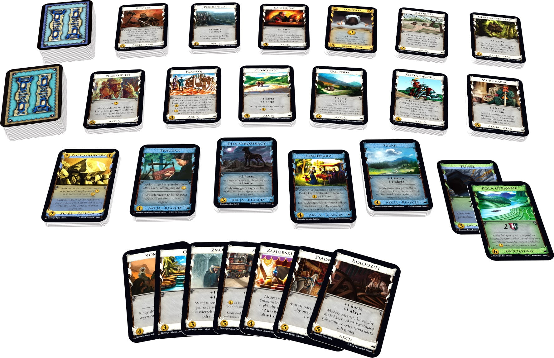 Dominion: W głąb lądu jest dodatkiem do gry Dominion, który zawiera 300 kart, w tym 26 nowych wzorów kart Królestwa. Główny motyw dodatku stanowią karty, których efekt rozpatruje się natychmiast po ich dodaniu. Dodatek ten nie zawiera kart niezbędnych do samodzielnej rozgrywki. Do rozgrywki potrzebna jest gra podstawowa. W głąb lądu można swobodnie łączyć ze wszystkimi dodatkami serii.