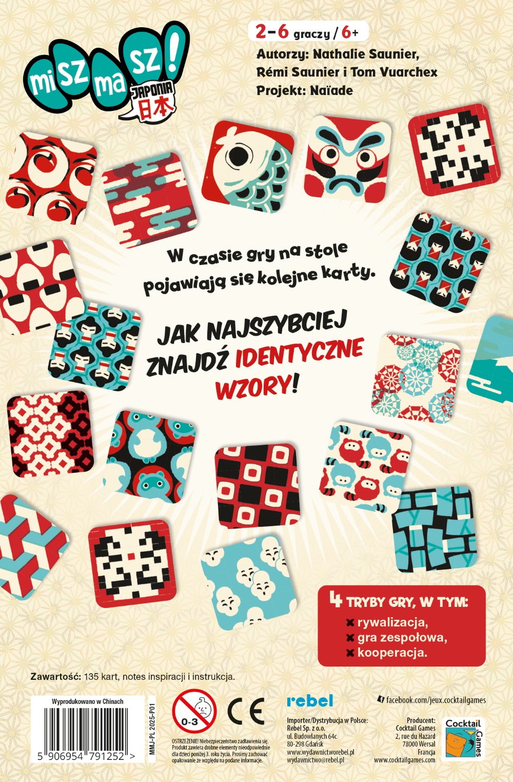 Miszmasz! Japonia to wyjątkowo dynamiczna karcianka, w której ze stale zwiększającej się puli symboli staramy się wychwycić pary. Wyzwanie polega na tym, że obrazki są dość niewielkie, a do tego niezwykle wręcz spójne: geometryczne i zachowujące tę samą, prostą paletę kolorów.