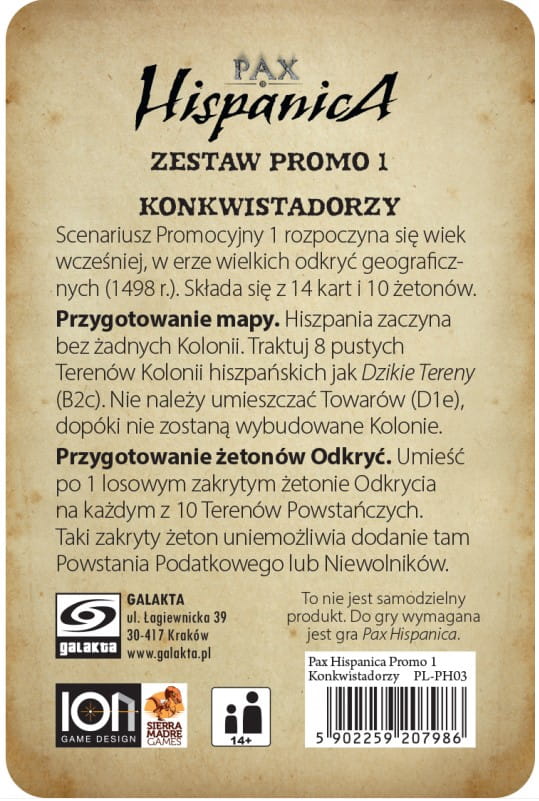 Pax Hispanica Zestaw Promo 1 - Konkwistadorzy. Scenariusz rozpoczynający się wiek wcześniej, w erze wielkich odkryć geograficznych - 1498 roku.