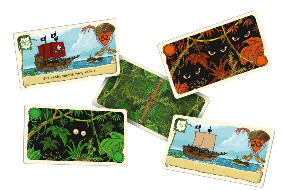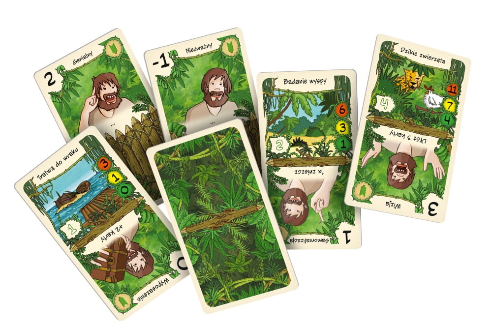 Rozgrywkę rozpoczynamy z zestawem kart walki – to nasza talia startowa, którą będziemy ulepszali, walcząc z kolejnymi zagrożeniami. Nasz rozbitek startuje też z określoną liczbą punktów życia. W kolejnych rundach będziemy stawiać czoła wyzwaniom znajdującym się w specjalnej talii zagrożeń. Przejdziemy przez nią trzykrotnie, za każdym razem zwiększając poziom trudności. Następnie, jeśli nasz rozbitek przetrwa, będzie musiał stawić czoła dwóm grupom piratów. W każdej rundzie pomagamy Robinsonowi walczyć z 1 zagrożeniem. Rozgrywka zaczyna się od etapu zielonego, w którym zagrożenia są w większości nieszkodliwe. Niestety, to samo można powiedzieć o umiejętnościach Robinsona (czyli o sile kart walki). Może się więc zdarzyć, że przegramy kilka pierwszych walk z tymi względnie słabymi zagrożeniami. Każde zagrożenie wskazuje, ile darmowych kart walki możemy dobrać podczas starcia oraz jaką wartość siły musimy na nich uzyskać, by je pokonać. Kolejne karty walki możemy dobrać płacąc punktami życia lub w wyniku efektów zagrywanych kart. Jeśli suma siły wszystkich odkrytych kart walki jest równa lub większa od wartości zagrożenia, wygrywamy walkę. W nagrodę karta pokonanego zagrożenia trafia na stos odrzuconych kart Robinsona, a więc zamienia się w nową kartę walki. Od tej chwili będziemy korzystać z jej dolnej części, czyli części wiedzy. Jeśli natomiast nie udało nam się pokonać zagrożenia, tracimy punkty życia. W zamian za nie możemy jednak odrzucać odkryte karty walki, a tym samym eliminować te najbardziej nieprzydatne czy wręcz przeszkadzające, co stanowi ważny element strategii. W ten sposób rozgrywamy kolejne rundy aż talia zagrożeń wyczerpie się po raz 3. W tym momencie zostaje jeszcze walka z piratami. W każdej rundzie czekają na nas 2 losowe karty z puli. Rozpatrujemy je osobno i traktujemy tak samo jak zagrożenia. Aby wygrać, musimy pokonać obie pirackie załogi!