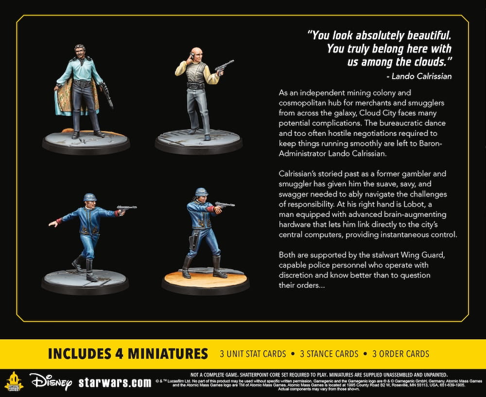 Star Wars: Shatterpoint - Co my tu mamy to rozszerzenie wprowadzające do gry oddział złożony z 4 nowych jednostek. Wśród nich znajdują się Lando Calrissian, Lobot oraz 2 przedstawiciele Straży z Bespin. Zestaw zawiera wszystko, co niezbędne, by dodać jednostki do swojej drużyny.