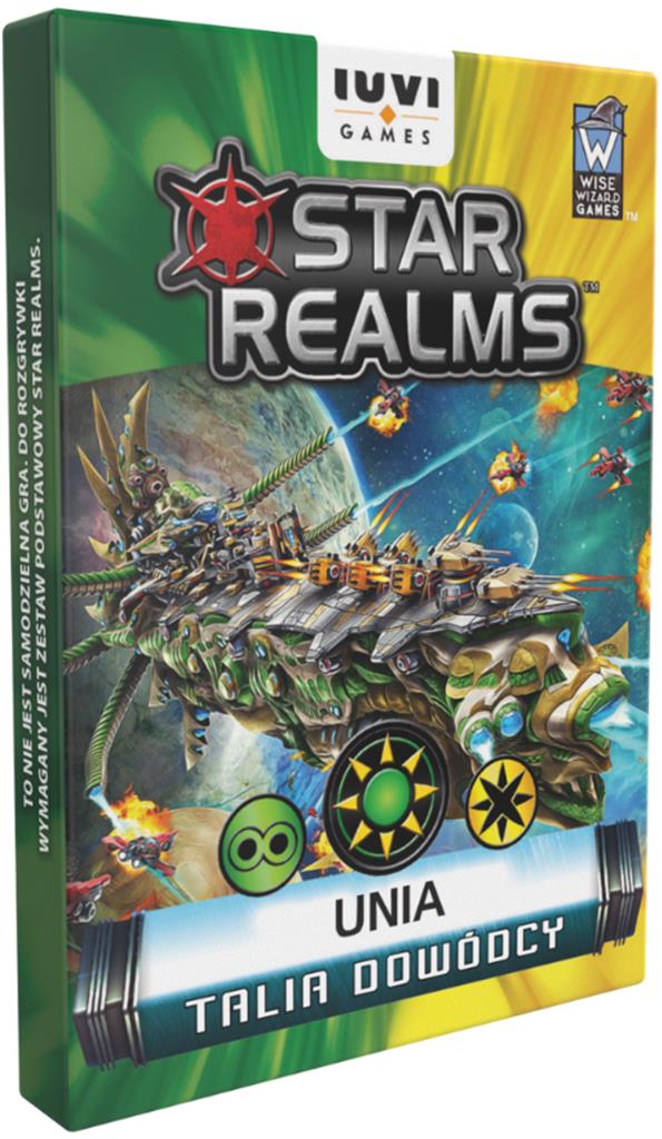Rozszerzenie Talia Dowódcy - Unia zawiera 18 kart do wykorzystania w grze Star Realms: kartę Legendarnego Dowódcy, spersonalizowaną talię osobistą, złożoną z 12 kart, super-okręt o koszcie 8 Handlu, 2 potężne Gambity, 2 spersonalizowane karty punktowania.