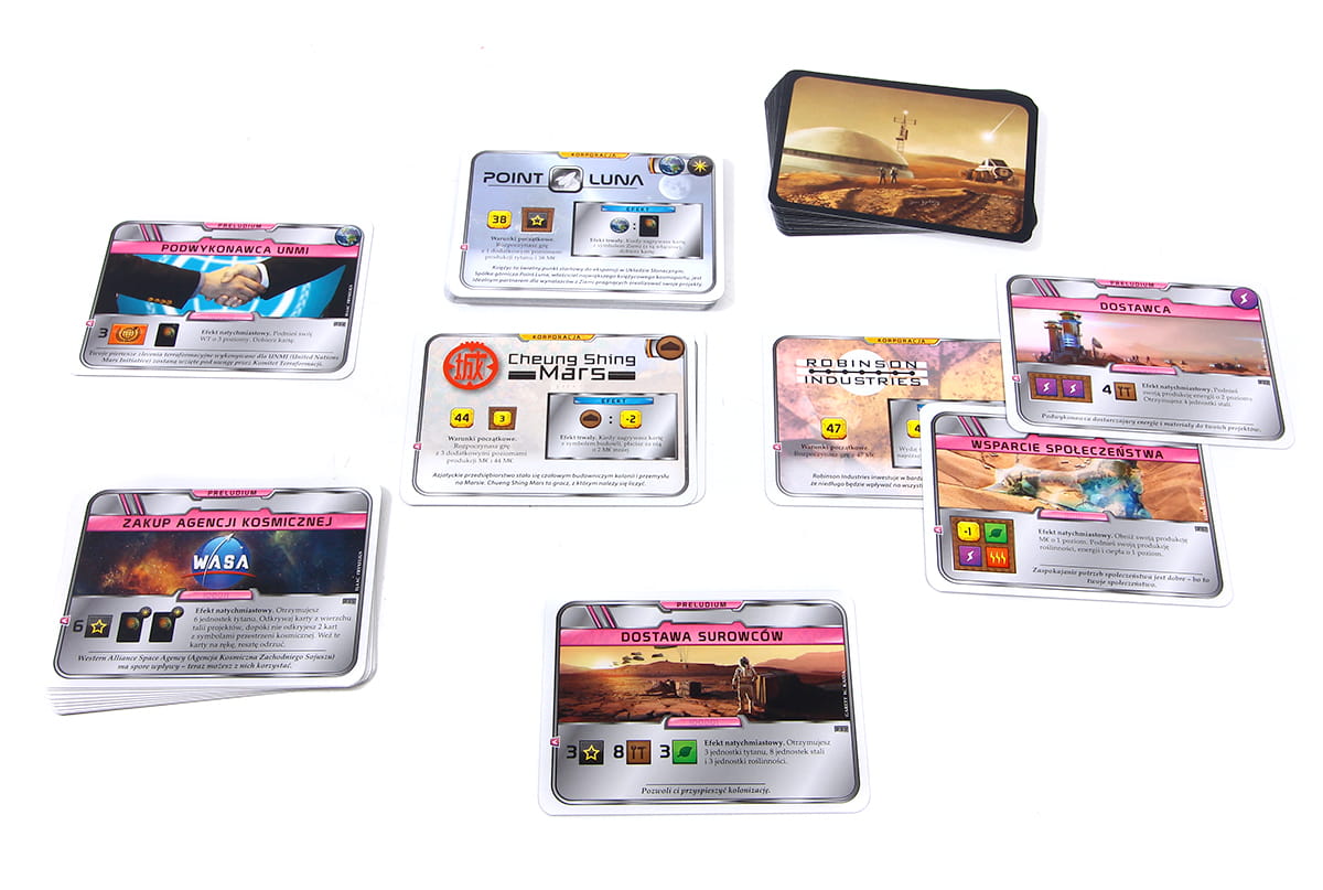 Do walki o wpływy w dodatku Terraformacja Marsa: Preludium dołącza 5 nowych korporacji, a sama gra zostaje rozszerzona o 7 unikatowych projektów. Sercem dodatku są jednak karty preludium, które wpływają na to, z jakim dodatkowym przywilejem rozpoczniecie rozgrywkę. Nagroda pozwoli Wam szybciej rozpędzić silniczek i pomoże w budowaniu swojej pozycji już na starcie. Karty preludium w połączeniu z korporacjami i zestawem projektów, które otrzymujemy w pierwszej turze, sprawiają, że Terraformacja Marsa staje się jeszcze bardziej regrywalna.