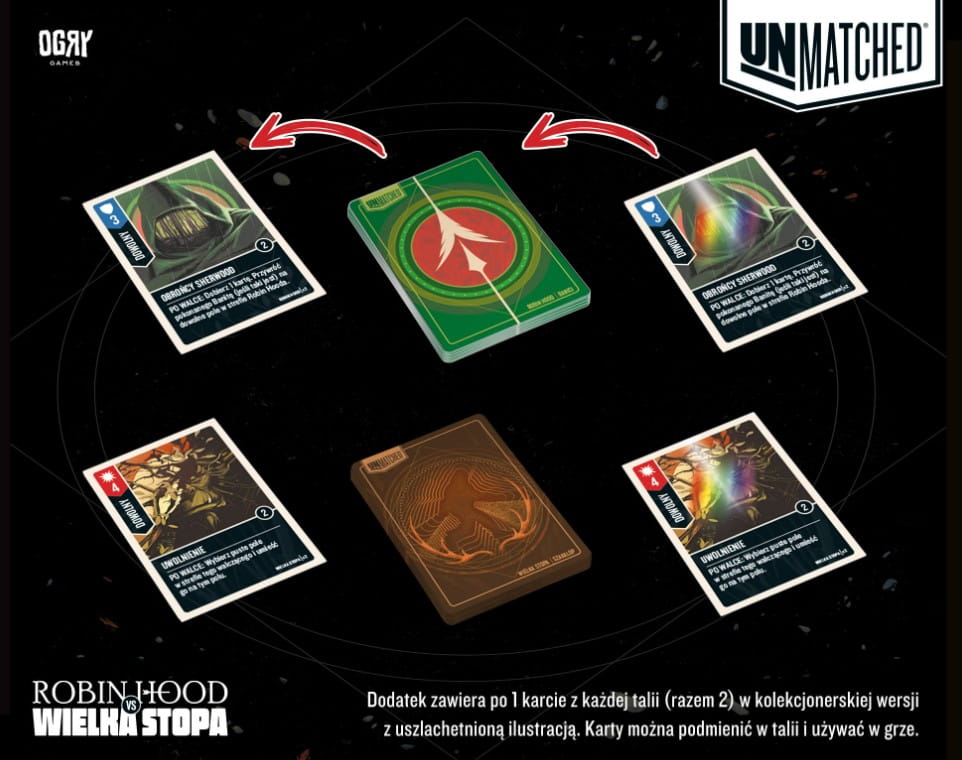 Zestaw 2 kart kolekcjonerskich do gry Unmatched: Robin Hood vs. Wielka Stopa.