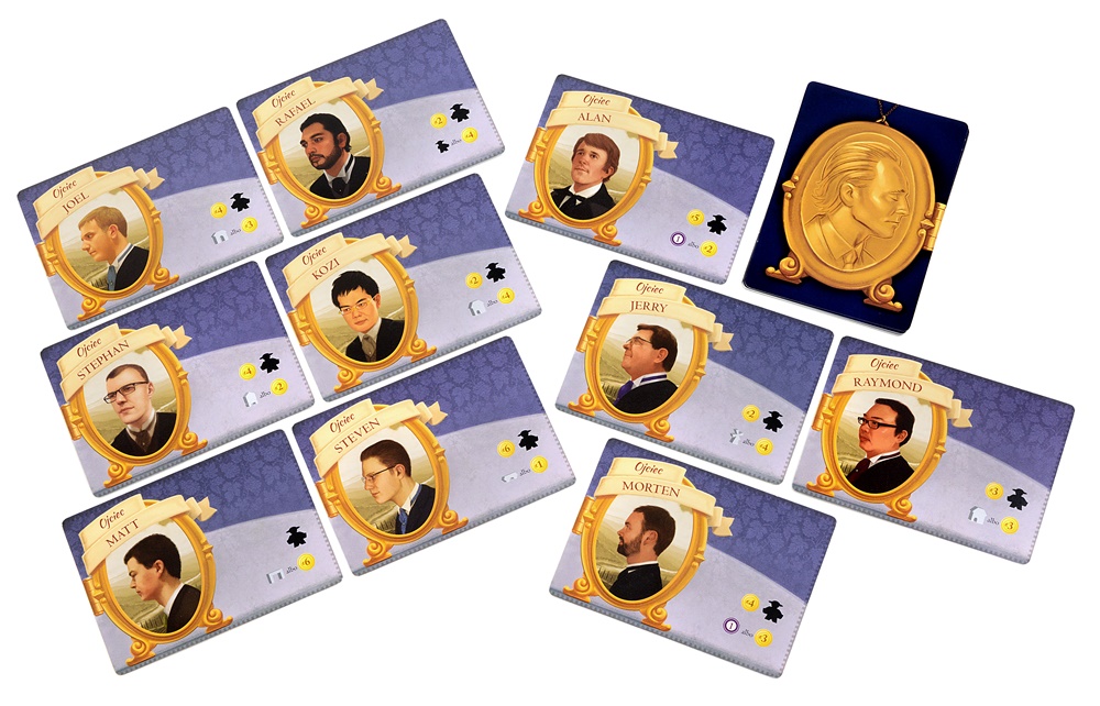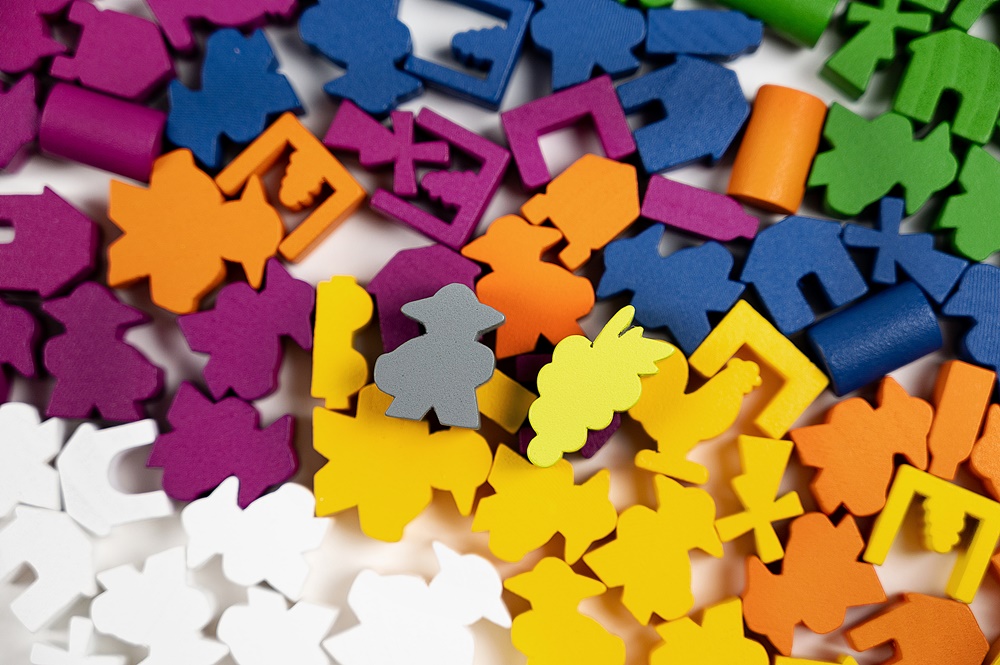 - 30 pionków pracowników w 6 różnych kolorach oraz 1 szary pracownik tymczasowy