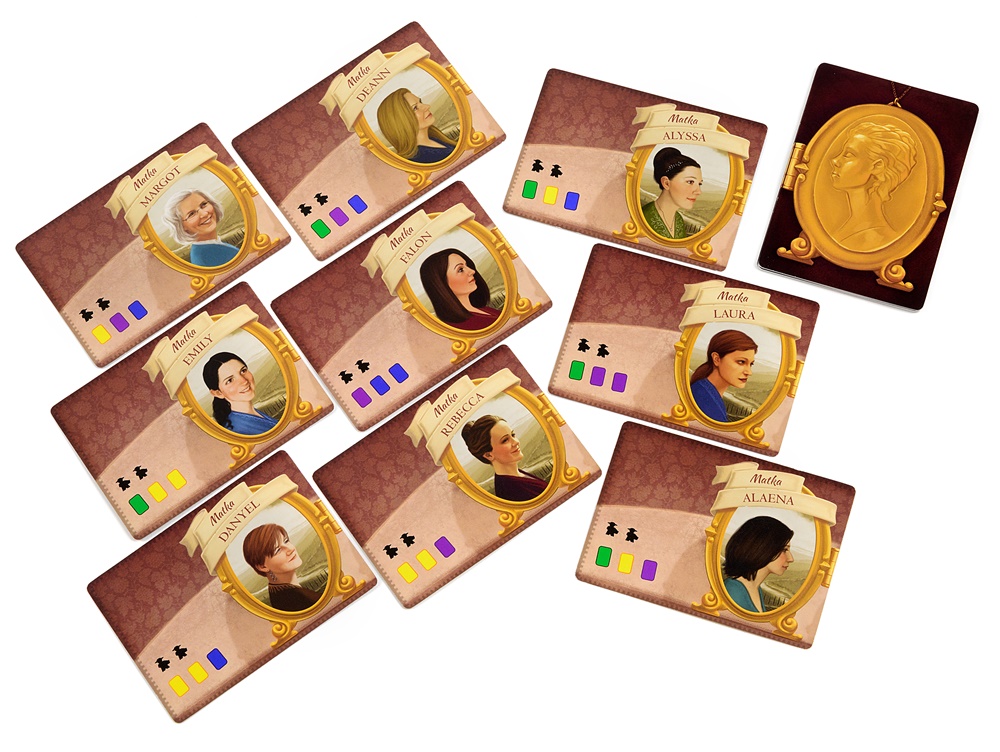 - 78 dużych (63×88 mm) i 154 małych kart (44×67 mm):