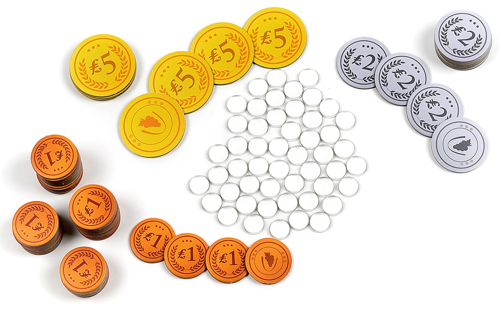 - 72 żetony lirów (52 brązowe monety, 12 srebrnych monet, 8 złotych monet)