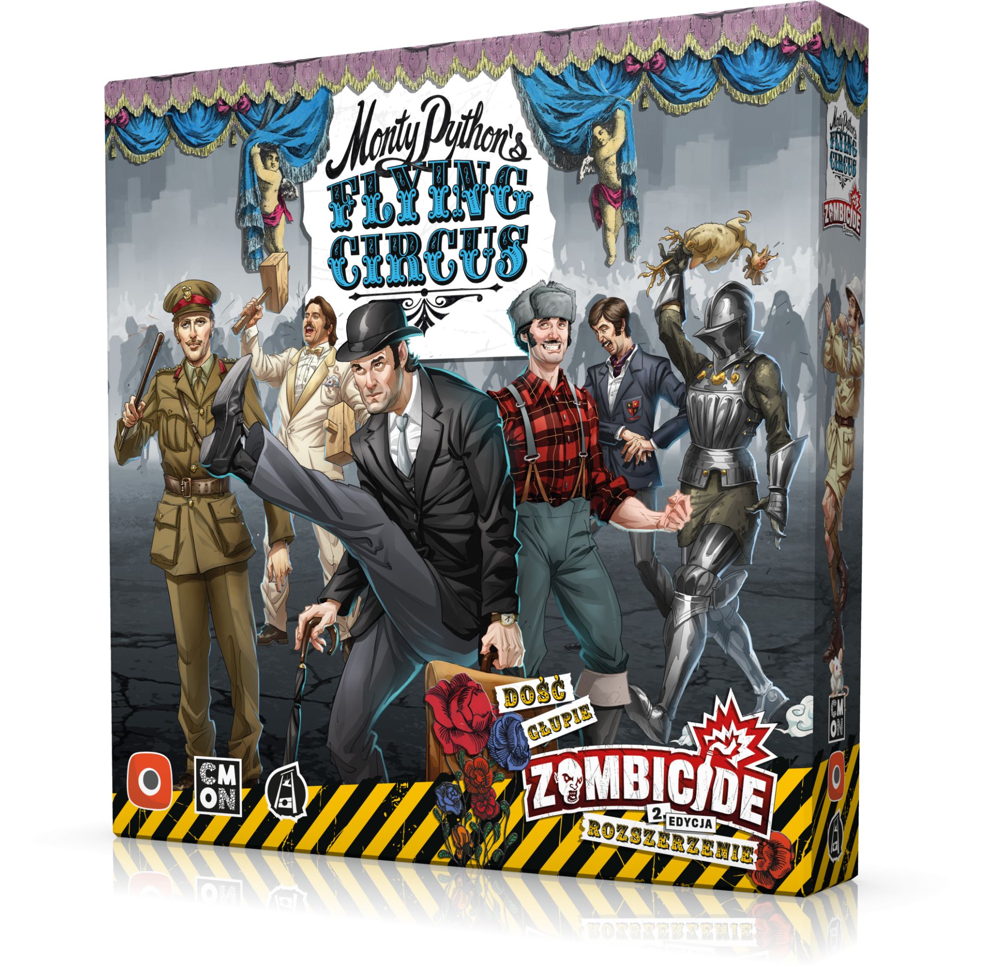 Inwazja zombie przesiąka oparami absurdu za sprawą Latającego Cyrku Monty Pythona, rozszerzenia do Zombicide 2. Edycji. Najbardziej nonsensowne twory kultowego show angielskich komików trafiają na planszę z serią rewelacyjnych figurek i porcją odjechanych zasad. Chwytaj Halibuta albo Surowego Kurczaka i ruszaj na spotkanie Głupiokroczących Szwendaczy, Piekielnych Babuni, Niemartwej Papugi i tej, której nikt się nie spodziewa!
