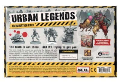 Nadszedł czas, by zmierzyć się z własnym koszmarami! Miejskie Legendy — Zestaw Abominacji to dodatek do kultowej kooperacyjnej gry planszowej prosto ze stajni CMON. Apokalipsa zombie przybiera na sile, kiedy do gry włączają się nowe, przerażające Abominacje. Do tej pory krążyły one tylko w opowieściach, lecz teraz ich istnienie stało się faktem. Co może być gorszego od Klauna Zabójcy? Zmutowany Klaun Zabójca!