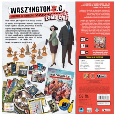 Zaraza przeniosła się do Waszyngtonu! Zombicide 2. Edycja: Waszyngton Z.C to dodatek do kultowej kooperacyjnej gry planszowej osadzonej w postapokaliptycznym świecie zombie. Plaga nieumarłych przenosi się do stolicy Stanów Zjednoczonych. Tym razem nie rozegracie pojedynczego scenariusza, lecz całą kampanię złożoną z 10 różnorodnych misji. Zdobędziecie doświadczenie i potężną broń, którą przy odrobicie szczęście zachowanie do kolejnej rozgrywki. Największą nagrodą nie będą jednak łupy, lecz unikatowa, pełnia wspomnień historia, którą zapamiętacie na długie lata!